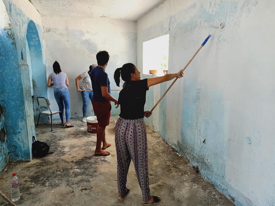 Peinture des murs de l’ecole + installation d’une bibliothèque et d’une cantine au sein de l’école.