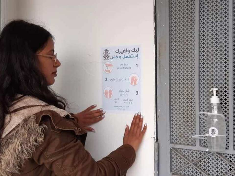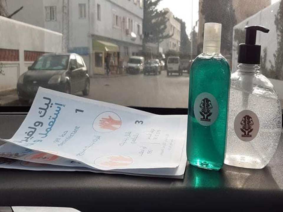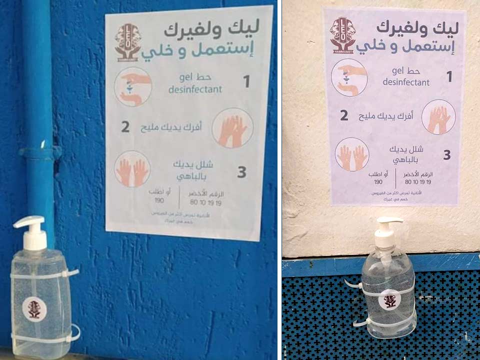 Sensibilisation au lavage des mains et équipement des lieux publics à Hammamet de bouteilles de gel désinfectant pour des mesures d’hygiénes citant :